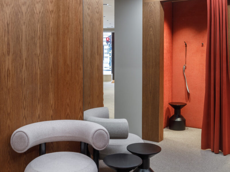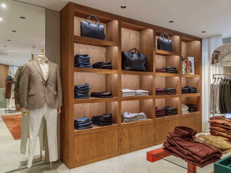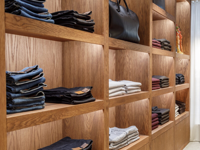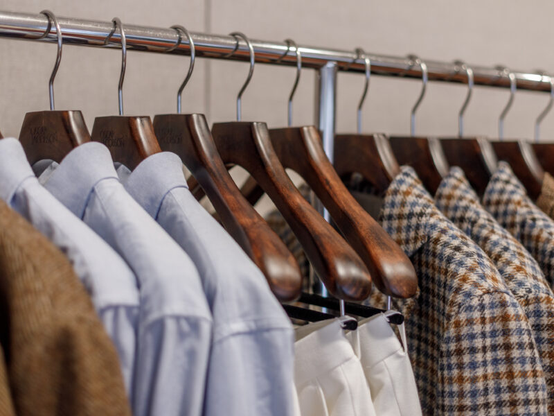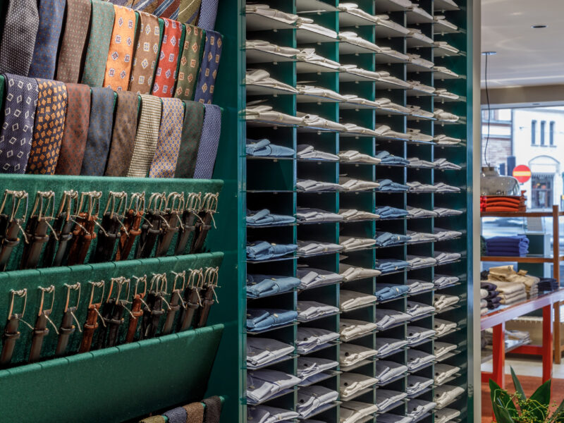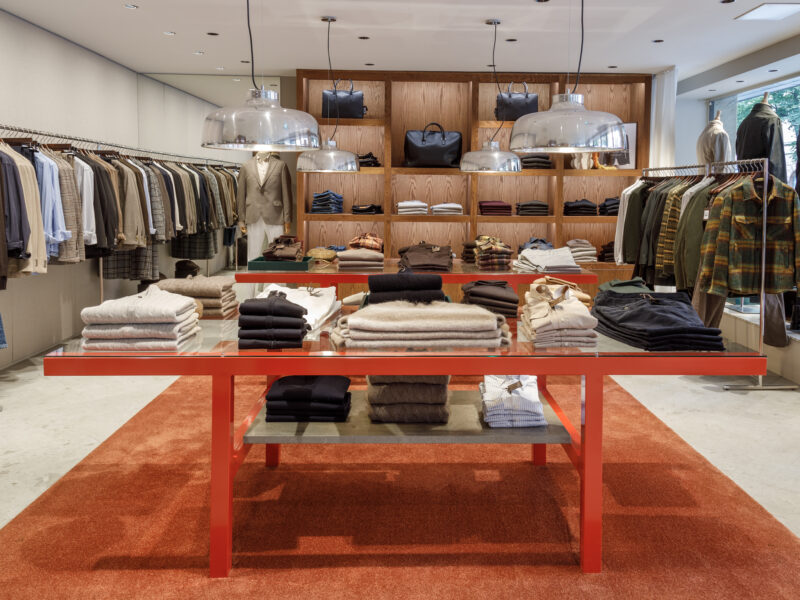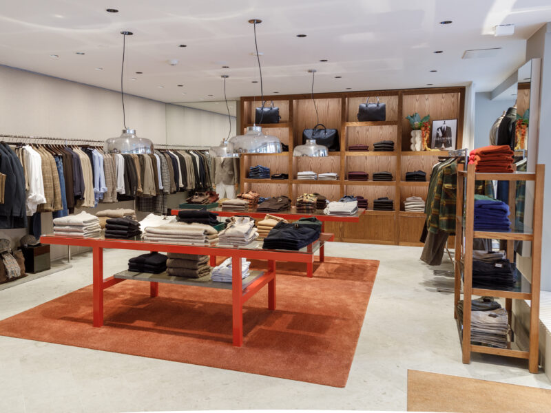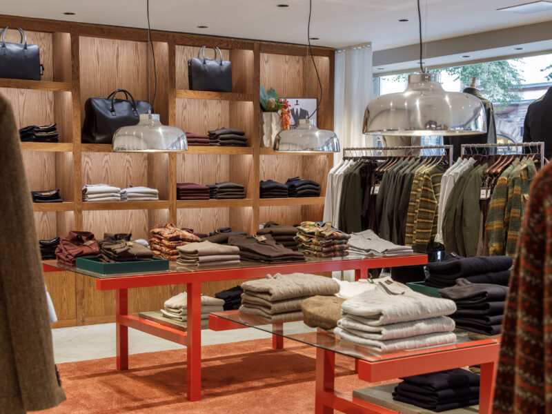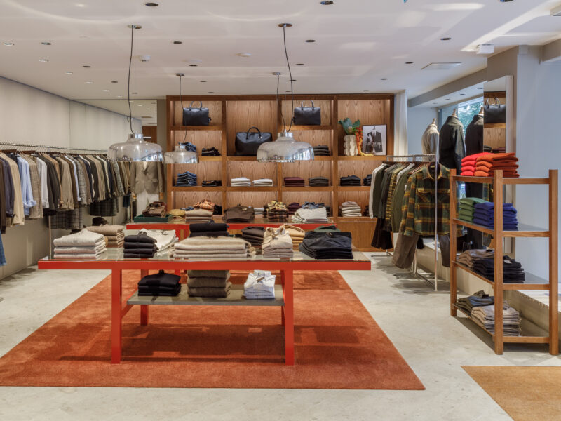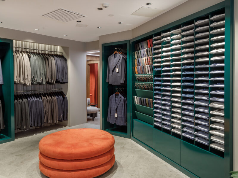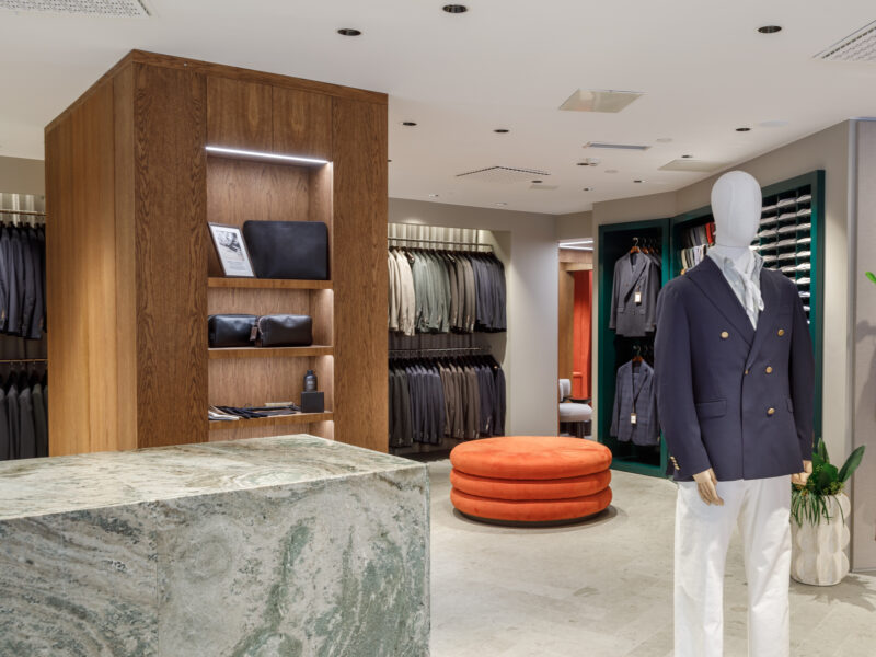 Aktualisierter Oscar Jacobson-Store in der Birger Jarlsgatan 6 in Stockholm. Oscar Jacobson ist ein schwedisches Herrenbekleidungsunternehmen, das 1903 vom Schneider Oscar Jacobson in Borås gegründet wurde. Oscar Jacobson war bis 1957 CEO des Unternehmens und wurde dann von seinem Sohn Anders Jacobson abgelöst. Oscar Jacobson arbeitet mit „Slow Fashion“. Das bedeutet, dass ihre Anzüge über zehn Jahre halten können. Dann muss die Qualität halten, der Anzug muss stilvoll sein und das Kleidungsstück muss sich an einen Körper anpassen können, der über einen so langen Zeitraum neue Dimensionen annehmen kann. Es liegt in der DNA von Oscar Jacobson, stets hohe Qualität zu bieten, und für Oscar Jacobson ist es eine Frage der Nachhaltigkeit. Im September 2021 eröffnete Oscar Jacobson ein neues Store-Konzept, das Nachhaltigkeit mit Erlebnissen verbindet.